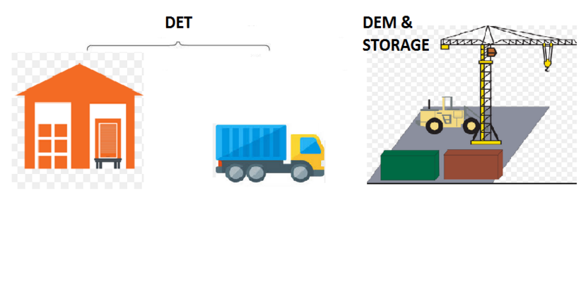 DEM, DET là một trong số các phụ phí được hãng tàu thu tại cả cảng xếp và cảng dỡ, mà chúng ta có tên gọi chung của các phụ phí đó là Local Charge. Tương ứng với 3 chữ viết tắt đầu tiên của Demurrage (DEM) là phí lưu container tại bãi, và Detention (DET) là phí lưu container tại kho của khách hàng.