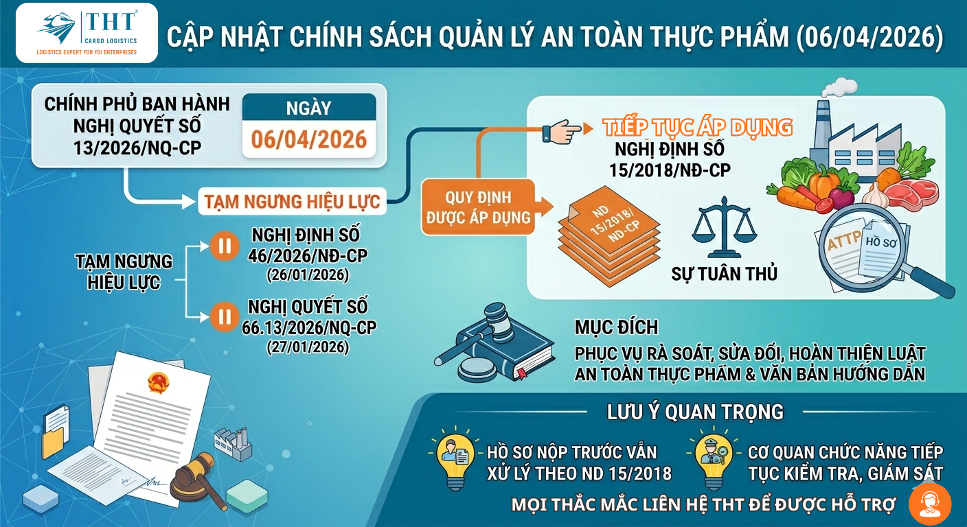 CẬP NHẬT CHÍNH SÁCH AN TOÀN THỰC PHẨM: TẠM NGƯNG HIỆU LỰC MỘT SỐ QUY ĐỊNH MỚI Ngày 06/04/2026, Chính phủ đã ban hành Nghị quyết số 13/2026/NQ-CP về việc tạm ngưng hiệu lực một số quy định liên quan đến quản lý an toàn thực phẩm. Đây là cập nhật quan trọng mà doanh