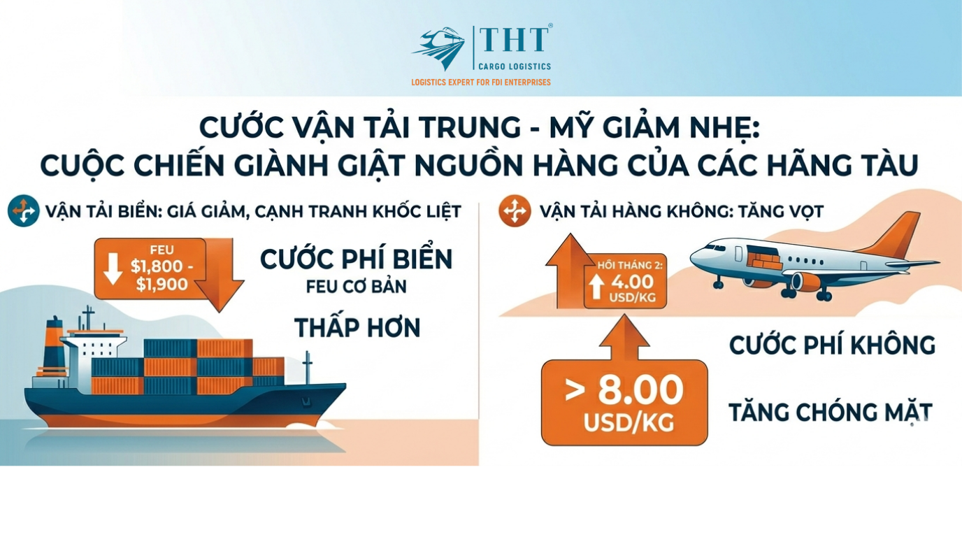 CƯỚC VẬN TẢI TRUNG – MỸ GIẢM NHẸ: CUỘC CHIẾN GIÀNH GIẬT NGUỒN HÀNG CỦA CÁC HÃNG TÀU Tháng 03/2026 đánh dấu một bước ngoặt lớn của thương mại toàn cầu khi các cơ chế hợp tác đa phương dần suy yếu, thay thế bằng các chính sách đơn phương và rào cản kỹ thuật