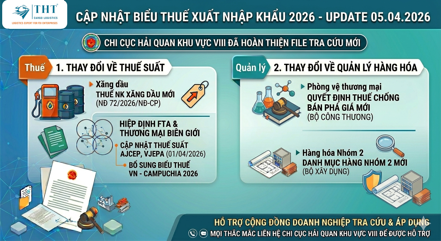 CẬP NHẬT FILE BIỂU THUẾ XUẤT NHẬP KHẨU 2026 (UPDATE ĐẾN 05/04/2026) Nhằm hỗ trợ cộng đồng doanh nghiệp trong việc tra cứu và áp dụng chính sách thuế cũng như quản lý hàng hóa xuất nhập khẩu một cách nhanh chóng và thuận tiện, Chi cục Hải quan khu vực VIII đã tiếp tục